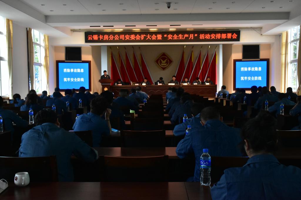 5月28日,卡房分公司切合“消除事故隐患,筑牢安全防线”的主题,安排部署6月安全月活动及工作,进一步落实全员安全责任制,传播矿山安全文化,持续开展“学安全、讲安全、用安全”活动。