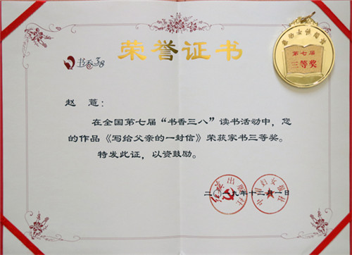 全国第七届“书香三八”读书活动启动后,冶炼分公司工会高度重视,以“争做读书先锋·逐梦幸福云锡”为活动主题,将读书活动与提升女职工素质紧密结合、与引导女职工岗位建功紧密结合,广泛动员女职工积极参加读书活动。读书活动得到了全司广大女职工的积极响应和热情参与,冶炼分公司工会在对征集到的44篇作品审核的基础上,向控股公司选送了7篇作品参赛。经全国“书香三八”读书活动组委会评审,冶炼分公司女职工赵薏的作品《写给父亲的一封信》荣获家书三等奖,周波的作品《当我开始爱自己》荣获征文优秀奖。