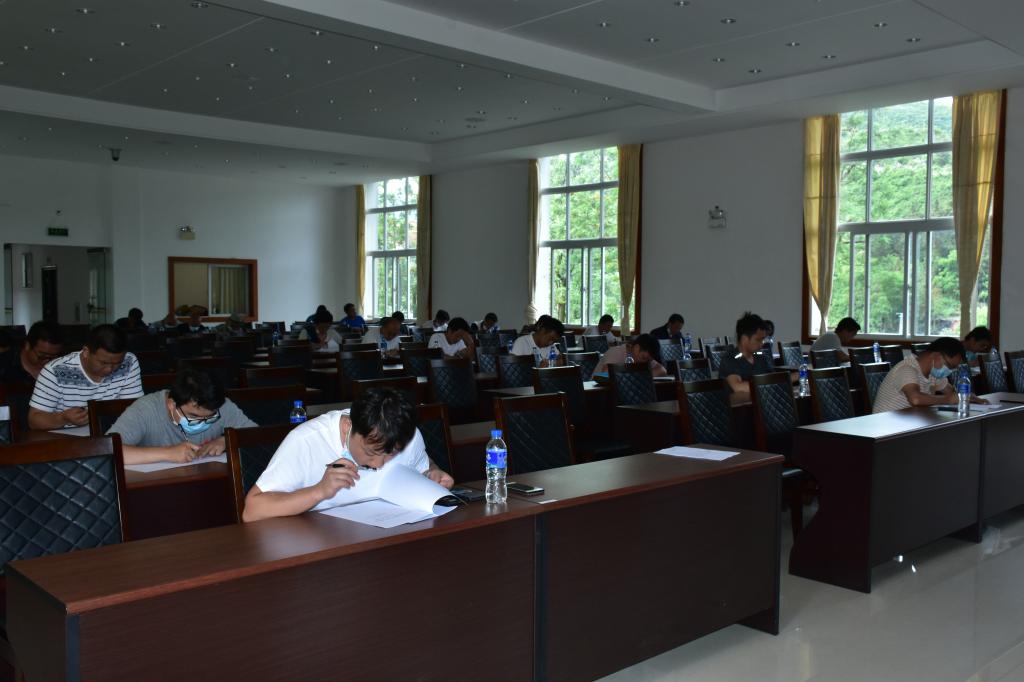 经过前两轮理论、实作的激励比拼,第三轮竞赛主要结合矿山井下贯通工程实际案例,对选手们计算工程贯通参数、阐述标定中线、腰线的方法及要求、现场技术交底记录内容及规范性要求等进行考核,以检验选手们在工程放样以及技术交底方面的应变能力。比赛中,选手们沉着应对、细心答题,或紧锁眉头、或恍然大悟、或下笔如神,经过90分钟的比拼,一份份字迹清晰、书写工整的答卷呈现在了考官面前。