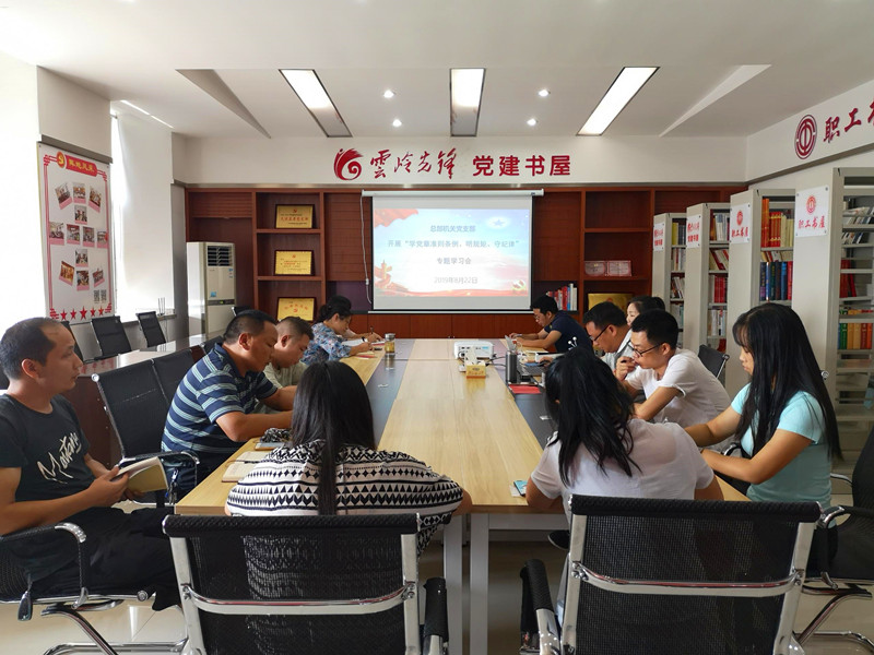 8月22日,按照主题教育学习计划的安排,郴州公司总部机关党支部以“学党章准则条例、明规矩、守纪律”为题组织开展“不忘初心、牢记使命”主题教育集中学习,引导党员干部切实增强党的纪律意识、规矩意识,把党纪党规刻印于心,落实于行。