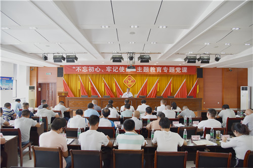 控股公司主题教育第七指导组组长汤发到会指导,郴州公司领导班子成员、各支部在岗党员、入党积极分子和职工代表共50人聆听党课。(唐四英)