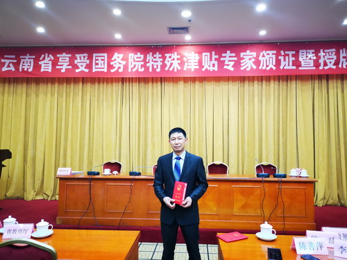 4月12日,在云南省2018年获国务院政府特殊津贴专家颁证暨新设立专家基层科研工作站和省级博士后站授牌活动会上,老厂分公司竹叶山坑一工区采矿一队队长、高级技师杨勇荣获2018年国务院政府特殊津贴。云南省人社厅党组副书记、副厅长和江峰、副厅长邢渭东、省委组织部人才工作处处长肖峰出席活动并为2018年荣获享受国务院政府特殊津贴的48位各行各业专家人才现场颁发证书。
