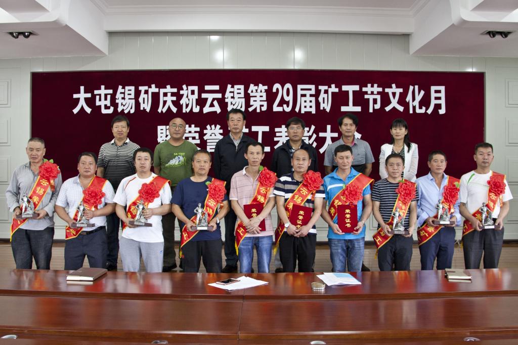 今年大屯锡矿被控股公司授予“荣誉矿工”光荣称号的分别有从事井下主要工种满30年的郑贵良、李智忠;满25年不满30年的谭正荣;满15年不满25年的毛锡文等7人。大屯锡矿纪委书记武锐宣读了表彰决定,与会的矿领导向“荣誉矿工”颁发了荣誉证书、奖品及奖金。