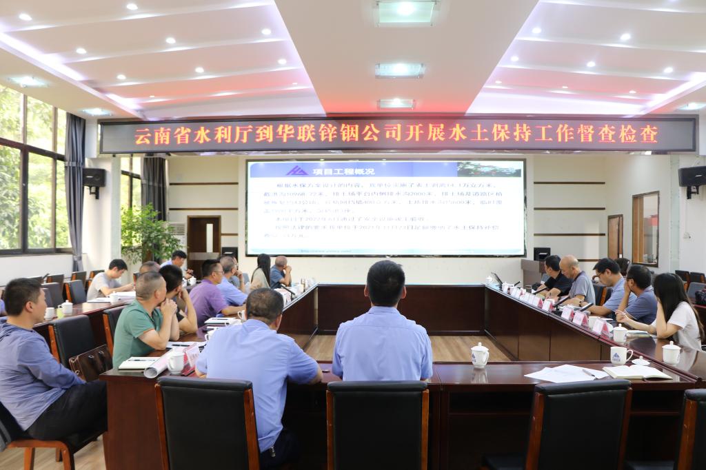 近日,云南省水利厅水土保持生态环境监测总站正处级干部李叔东率检查组到华联锌铟公司开展水土保持工作督导检查。华联锌铟公司党委副书记、副董事长、总经理赵云魁介绍相关工作情况。