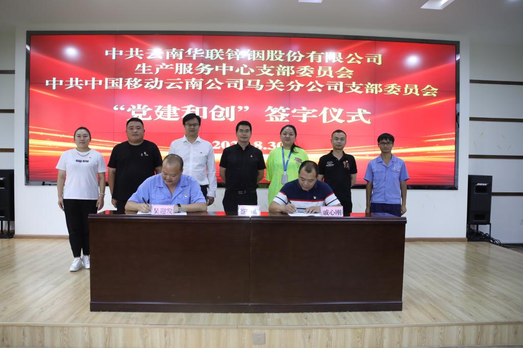 8月30日,华联锌铟生产经营党支部与中国移动马关分公司现场举行“党建和创”签字仪式,共同开展“党建和创”活动,以“优势互补、互惠互利、共同发展、合作共赢”的原则,充分发挥党建和创作用,提升党建工作水平,建立业务联系。