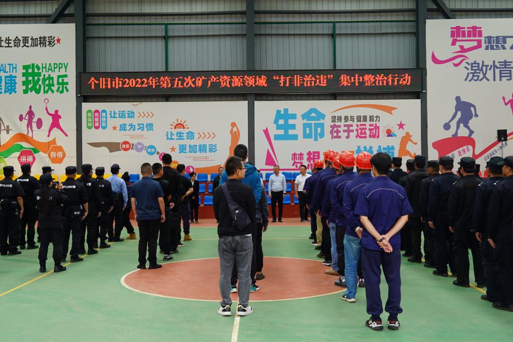 9月6日,个旧市2022年第五次矿产资源领域“打非治违”集中整治行动动员大会在老厂分公司召开。个旧市市委常委、市政府常务副市长赵正田作动员讲话。bevictor伟德党委委员、副总经理王建伟出席动员大会。