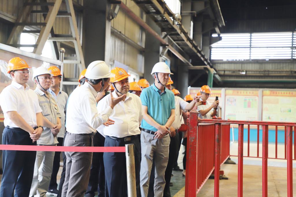 7月12日,省人大常委会副主任杨福生率省人大、省工业和信息化厅、省生态环境厅、省自然资源厅等检查组人员,到铜业分公司实地调研固体废物处置(利用)、生产经营及环保文化建设情况。控股公司副总经理宋兴诚及红河州、个旧市相关领导陪同调研。