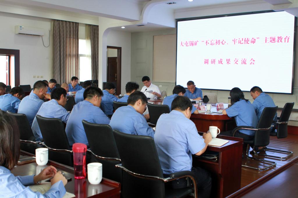 8月19日,大屯锡矿召开“不忘初心、牢记使命”主题教育调研成果交流会,以问题为导向,凝聚共识,担当使命,加强调研成果转化,推动主题教育工作和生产发展两手抓、两促进。控股公司主题教育第七指导组组长汤发、副组长杨宏贤到会指导。