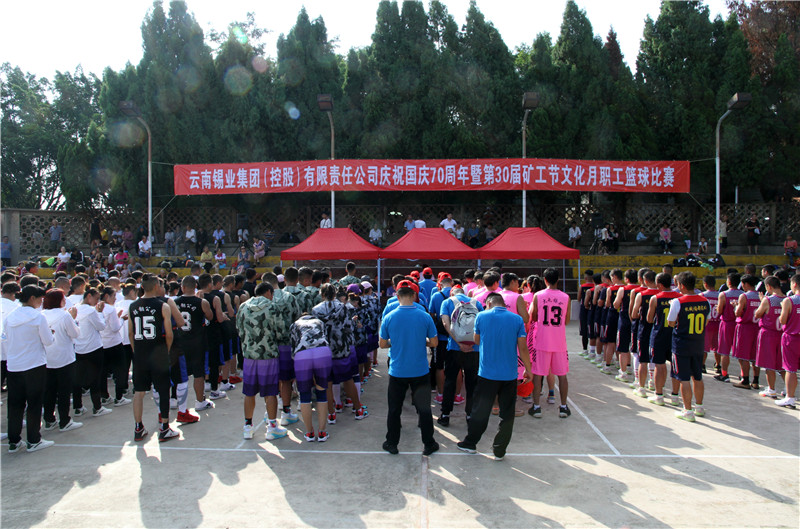 8月20日,控股公司庆祝国庆70周年暨第30届矿工节文化月职工篮球比赛在大屯锡矿鸣锣开赛,11支男队和6支女队将在为期一周的赛程内捉对比拼,尽显竞技运动的魅力。控股公司党委常委、工会主席汤发,控股公司工会副主席、团委书记张弛,以及各单位工会主席,各单位参赛队伍等200余人参加开幕式。