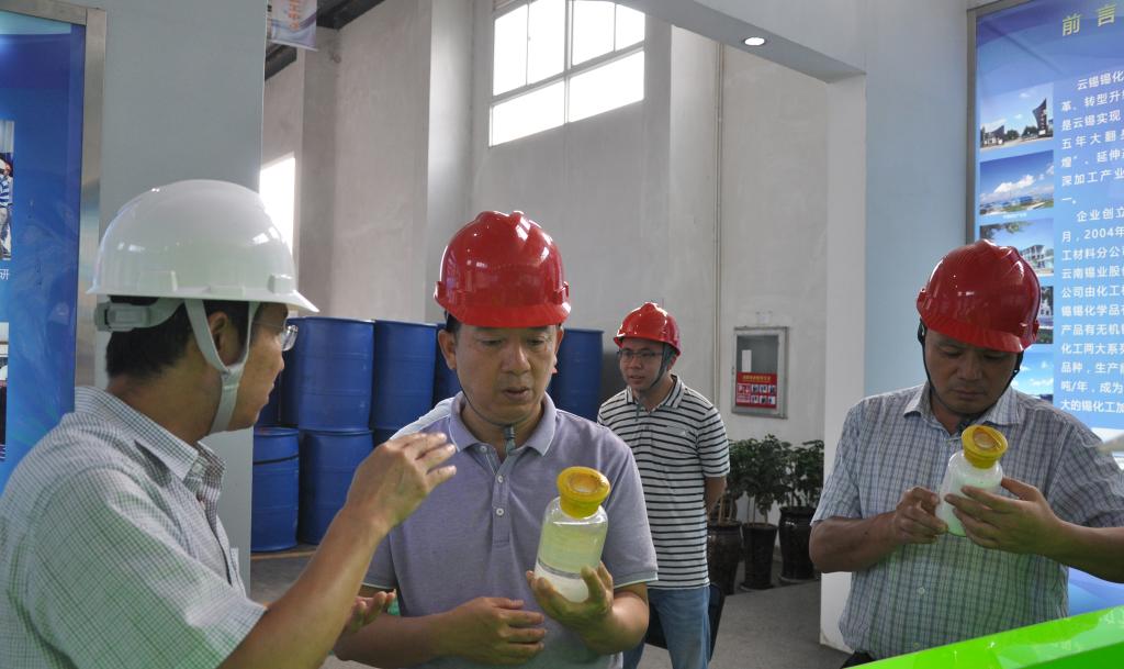 9月6日,蒙自经济技术开发区管委会党工委书记张宏一行4人深入锡化工生产车间,调研生产经营、产品产量、市场销售情况以及未来规划和当前发展遇到的困难。