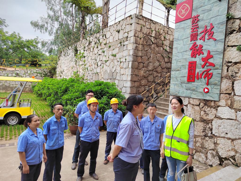 在选矿车间,吴君首先参观了苏云霞技能大师工作室,看望慰问技能大师苏云霞、余欢、段思佳,并与技能大师及其徒弟们进行座谈,详细了解了大师工作室建设、师带徒,磨矿、浮选、重选工艺流程及党建特色工作等情况,对大师工作室目前践行“典型引路法”和“一线工作法”所开展的师带徒工作、成立大师技术攻关组的做法和成效给予肯定。在座谈过程中,吴君指出:技能大师是云锡稀缺的财富,各级管理人员要为技能大师们做好服务、支撑和保障,让技能大师培育新人的土壤更肥、培育新人的空气更清新,努力培养出像耿家胜一样的国家级技能大师。