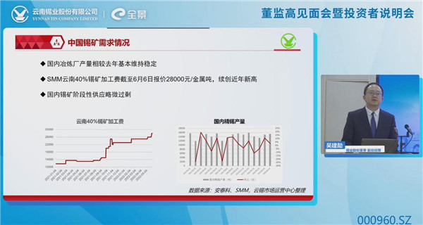 公司董事、副总经理吴建勋介绍了锡行业和市场的相关情况。
