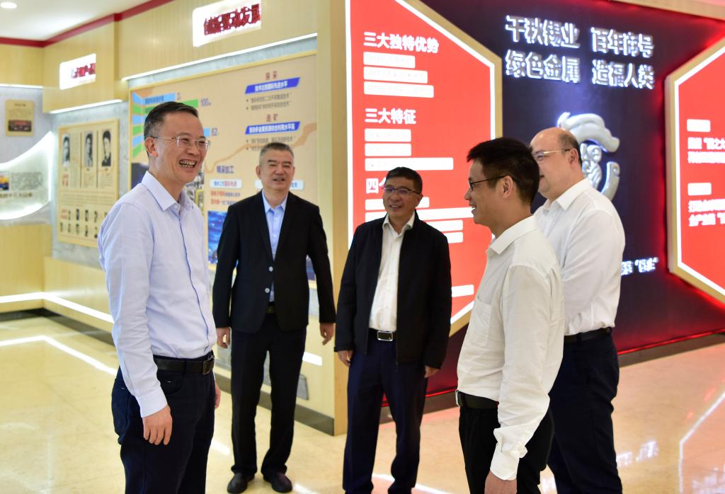6月16日下午,广西华锡集团股份有限公司党委书记、董事长蔡勇一行到访云锡。控股公司党委书记、董事长胡均在昆明总部一楼展厅接见来宾。