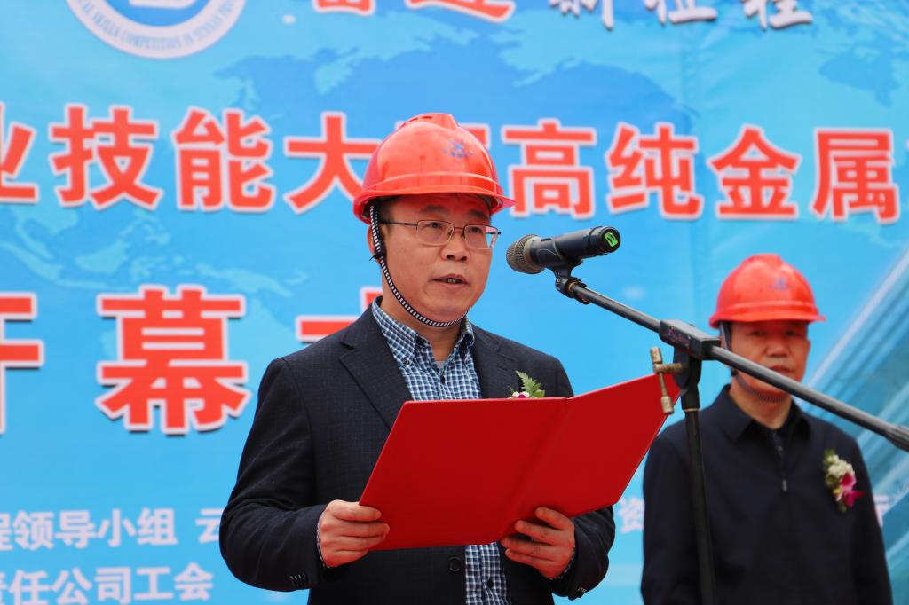 开幕式上,云南省总工会技术创新和职工素质建设工作办公室二级调研员彭启瑞宣布:云南省第十九届职工职业技能大赛锡化工高纯金属冶炼工决赛开赛。