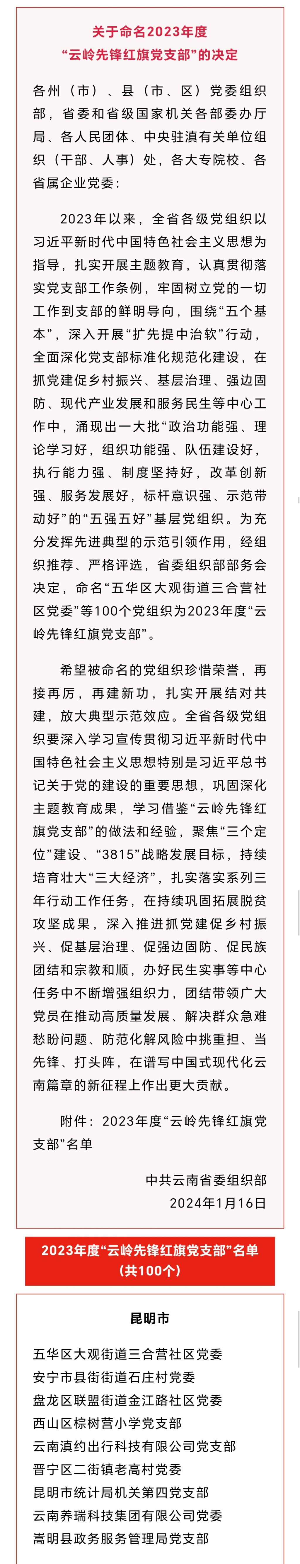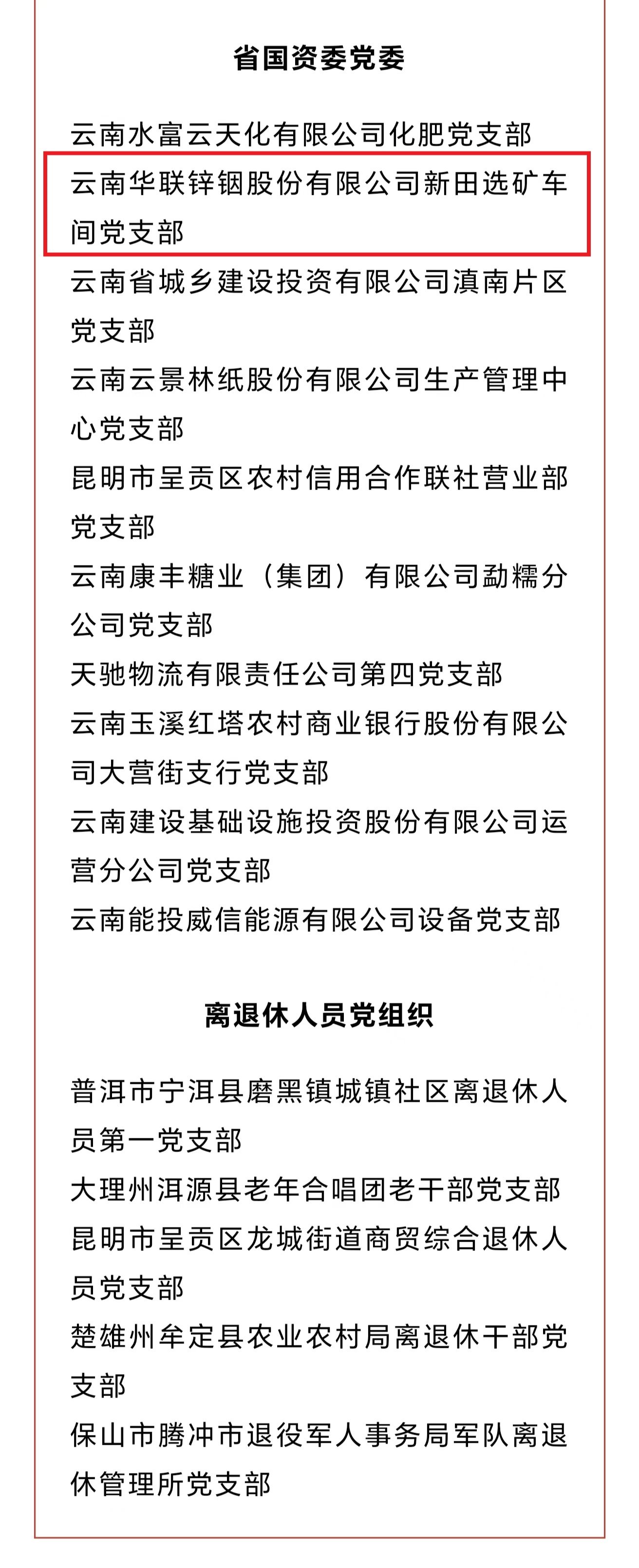 近日,中共云南省委组织部发布了《关于命名2023年度“云岭先锋红旗党支部”的决定》,华联锌铟公司新田选矿车间党支部榜上有名。