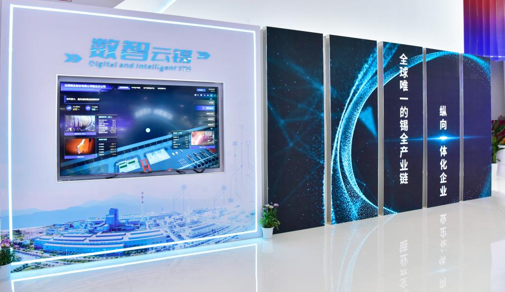 “锡铟新质生产力”板块以五折屏形式,呈现云锡作为全球唯一的锡全产业链纵向一体化企业,以科技创新引领高质量发展的生动实践;通过锡冶炼数字孪生工厂线上演示,展现云锡以数智化赋能,推进5G+应用与产业深度融合,加快打造全球锡行业唯一“灯塔工厂”的新探索。