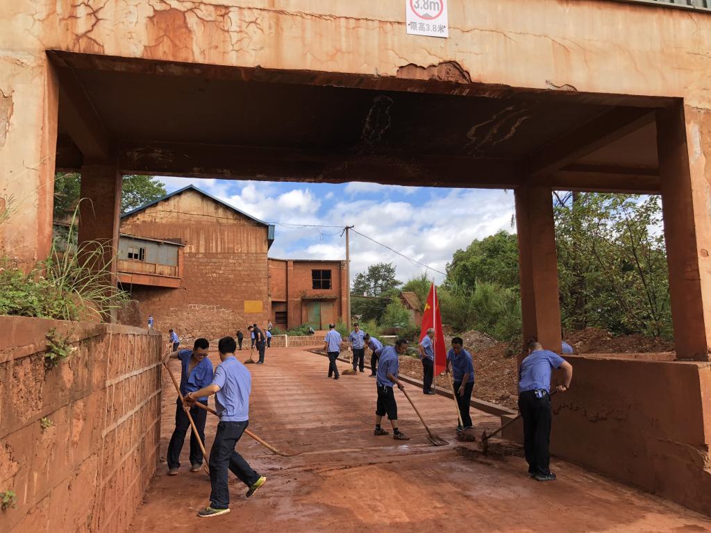6月13日,大屯锡矿选矿车间氧重选工段、精泥工段两个党支部组织开展以“不忘初心,牢记使命,清整厂区道路”为主题的党日活动。