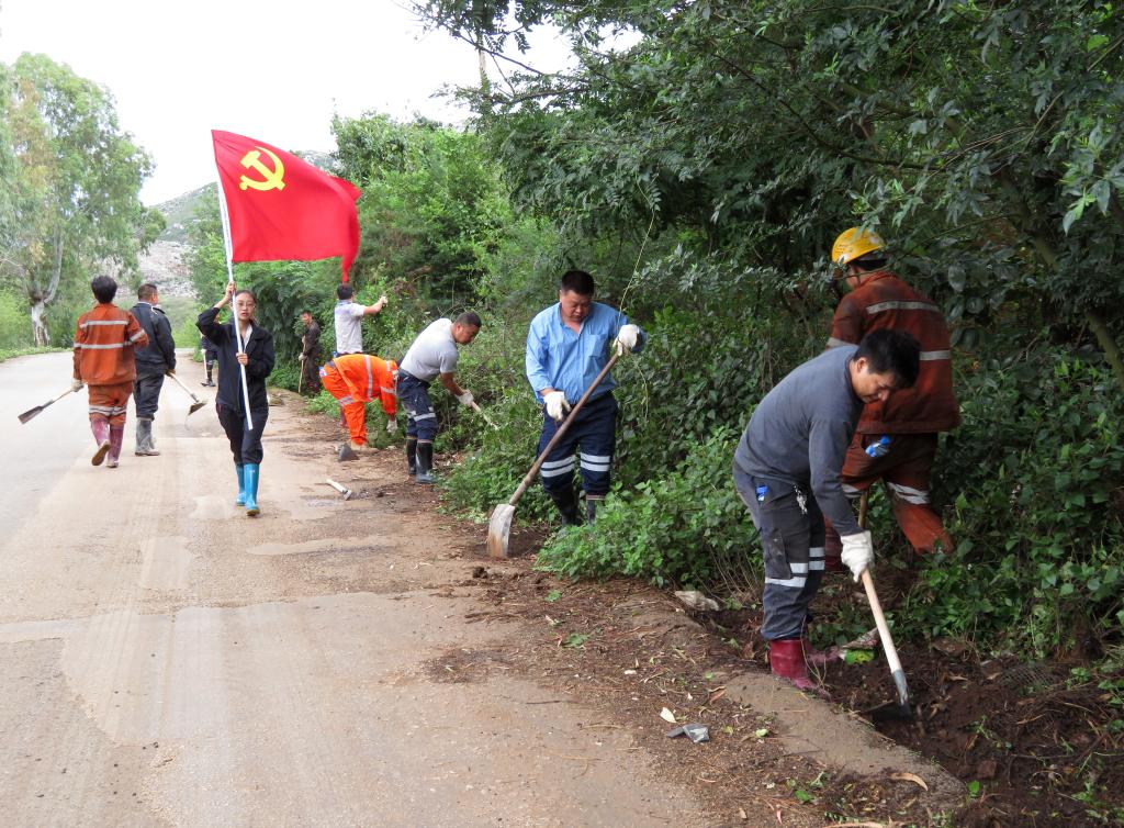 活动现场,以党支部为单位,按分配的区域任务开始劳动。大家干劲十足,分工协作,争先恐后,不畏天气闷热和灰土飞扬,利用工具、运输机械等,认认真真地清理防洪沟、杂草。经过3个多小时的辛勤劳动,公路两边的沟道、杂草已清除干净,既改观了环境卫生,又解决了行车安全隐患,更重要的是充分发挥了党团员在服务安全生产中的的表率作用。
