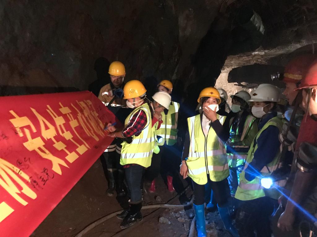 家属们乘坐电瓶车来到1360大箐东掘进一组采场迎头后,不断向亲人诉说一路走来的感受,叮嘱亲人一定要按安全规定作业才会拥有一切。随后,家属们纷纷在“父母妻儿牵挂你,安全生产心切记”的标语栏上,郑重签下了自己的名字。