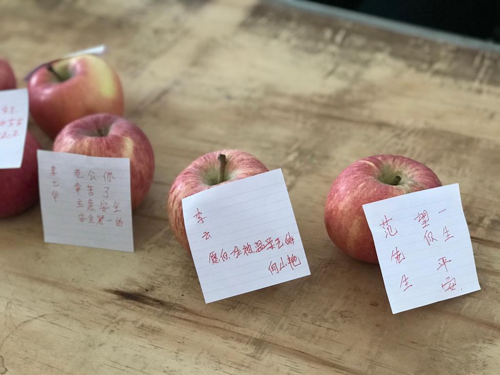 早上九点,家属们穿戴好劳动保护用品,接受安全教育后,领取了一份苹果和卡片。“终于实现和老公同进一个坑道的梦想了”“老公你辛苦了,注意安全,安全第一!”“一生望你平安!”......贴在苹果上一张张卡片上简单朴实的字句,寄托着家属对亲人满满的牵挂和提醒。