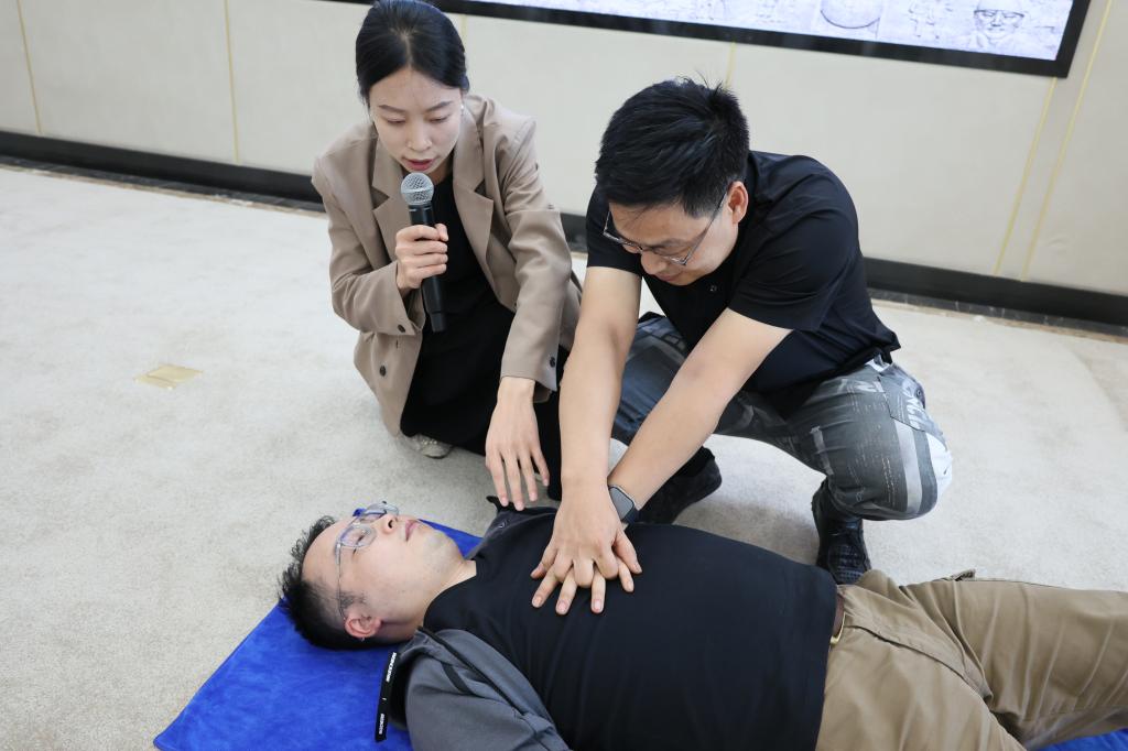 职工积极踊跃参与模拟演练,在边学习边实践的过程中全方位、立体式感受和掌握急救要领。