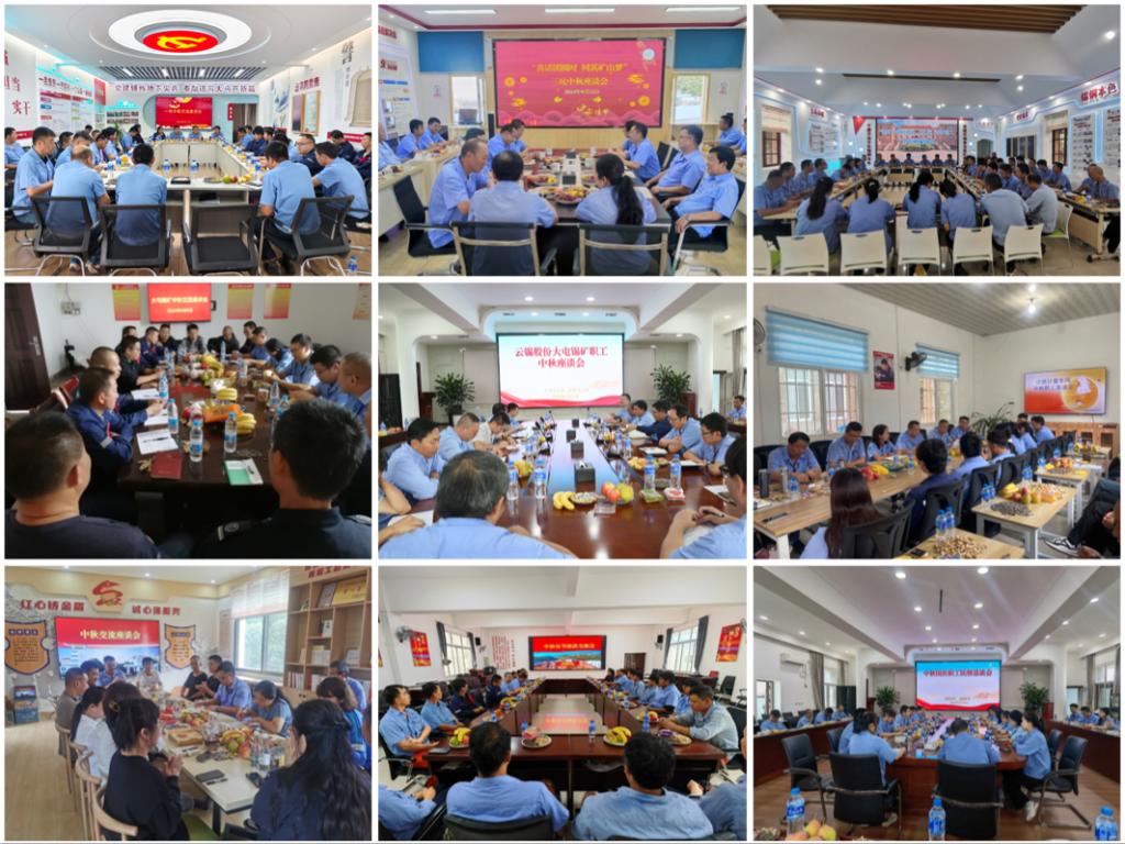 大屯锡矿:中秋节佳节前夕,大屯锡矿领导深入各坑口(车间)、部门,与广大基层一线班(队)组长、技术岗位职工和青年职工开展座谈,并送上中秋最真挚的慰问和美好的祝福,营造温暖和谐、团结奋进的企业文化氛围,增强企业凝聚力。