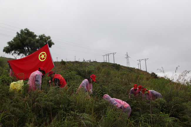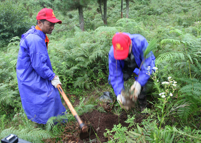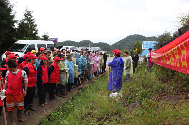植树现场,虽然阴雨绵绵,气氛却热火朝天。大家分工有序,齐心协力,挖土填坑、挥锹培土、浇水灌溉……。经过一个上午的辛勤劳动,植入的300余株树苗在微风中构成了一道靓丽的绿色风景线。