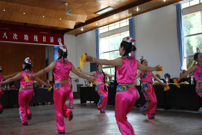 随后,还进行了文艺表演,把助残日活动推向了高潮。老厂政企、农村的群众演员表演了《舞龙》《士兵小唱》《彩云之南》《彝家狂欢》等精彩的歌舞节目;个旧市残联志愿者表演了手语《最好的未来》,用无声的语言表达了对美好未来的憧憬和向往;羊坝底福利厂残疾职工独唱歌曲《母亲》,抒发了对社会、对残疾人的感激之情,整场精彩的表演,赢得了观众雷鸣般的掌声。